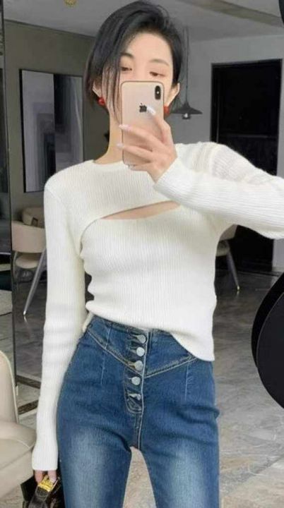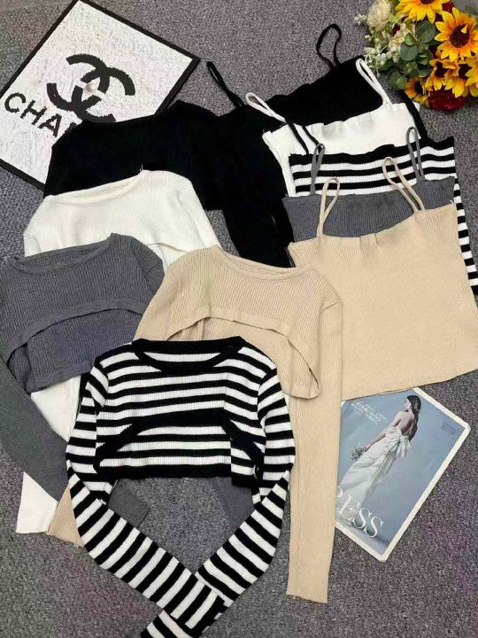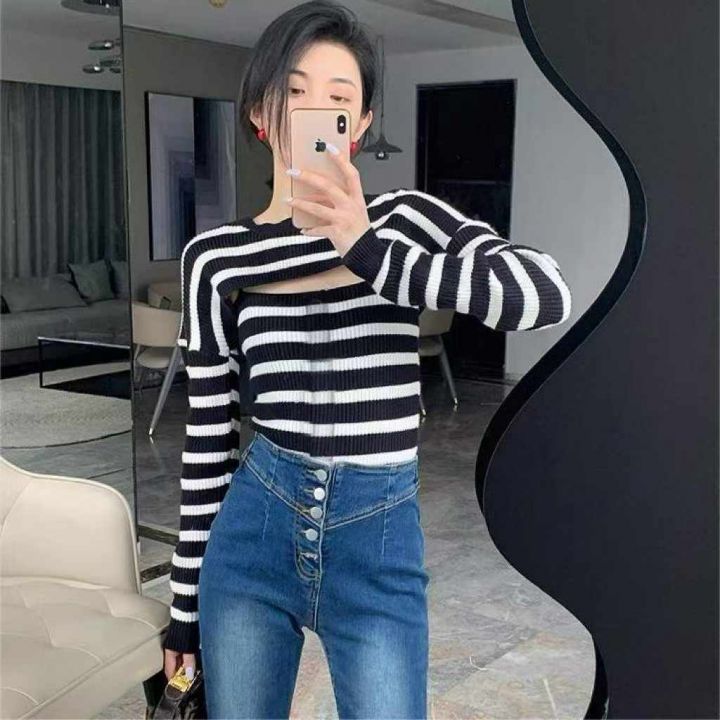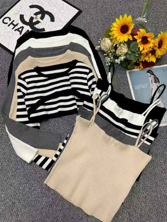 春季新款辣妹性感设计款针织毛衣2件套,独立包装,均...
