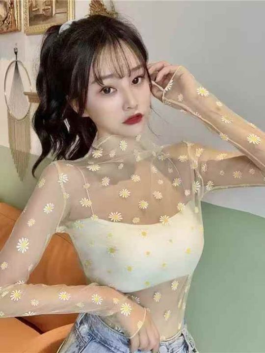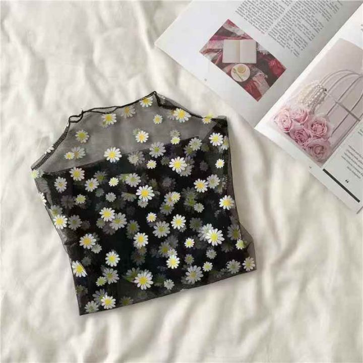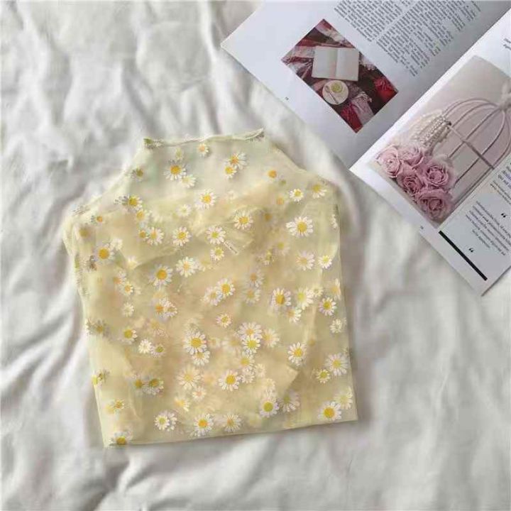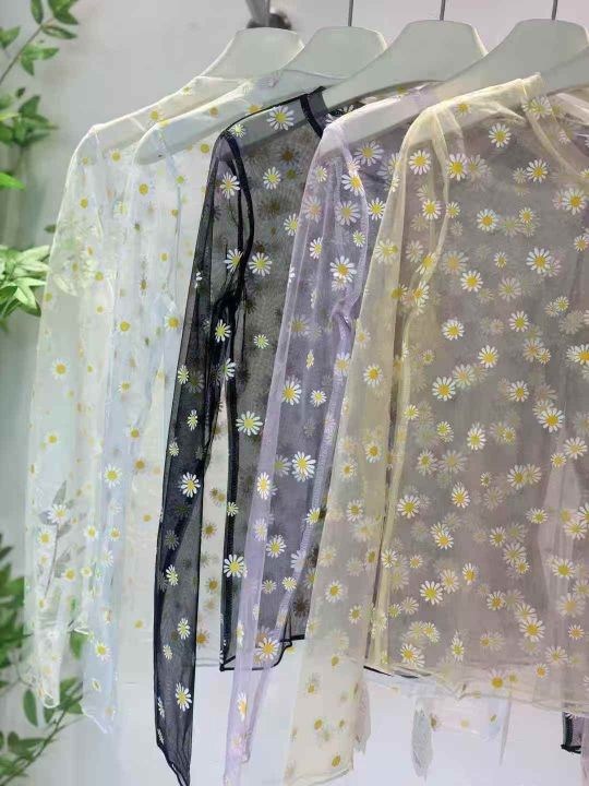 430件小雏菊网纱打底衫蕾丝t恤靓妹款夏季防晒叠穿纱衣...