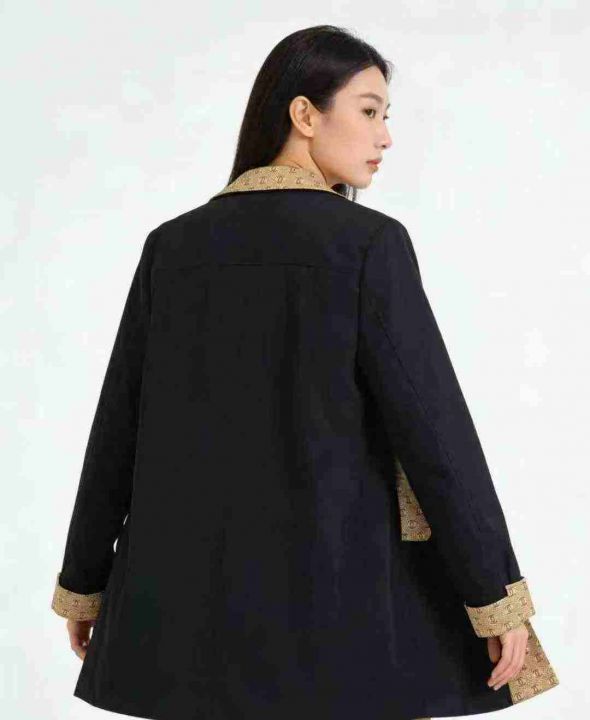 品牌女装风衣系列款,数量1275件,码数SML,杭州实体店货,黑色同一种款式3个花型,有内衬里布,全部防尘袋配衣架独立包装,吊牌价1680元,分货➕1随机配