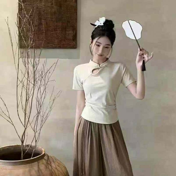 新中式国风刺绣盘扣纯棉短袖T恤女装夏季气质设计感修...
