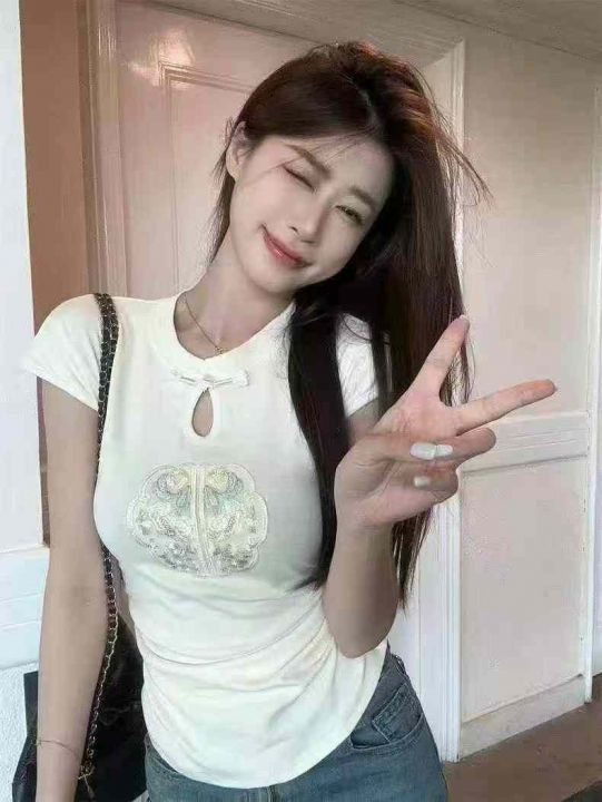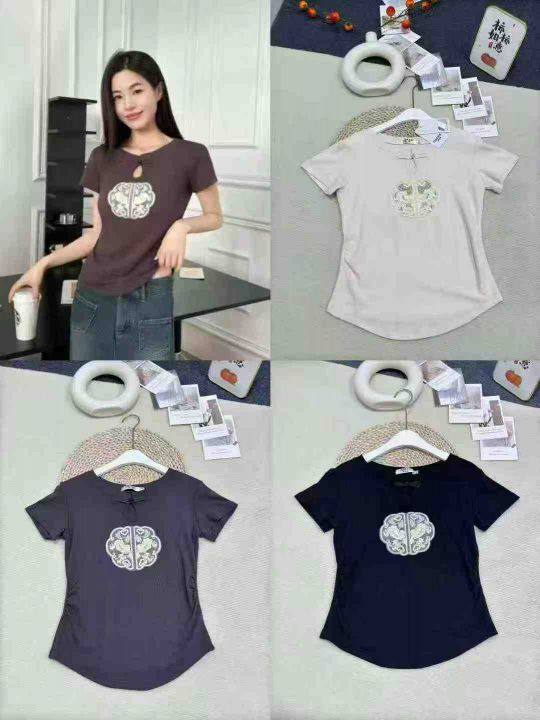 新中式国风刺绣盘扣纯棉短袖T恤女装夏季气质设计感修身显瘦短款上衣,(刺绣跟净色差不多各半)数量1440件,码数s-xl,独立包装,全清7.8,分货+0.5元