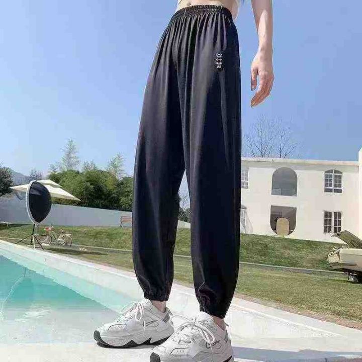 750条小熊防晒裤女夏季冰丝速干高腰轻薄凉感防蚊束脚口运动长裤凉凉裤,整款多个颜色,重工刺绣图案,两边插口袋设计,码数M一XL。