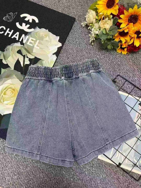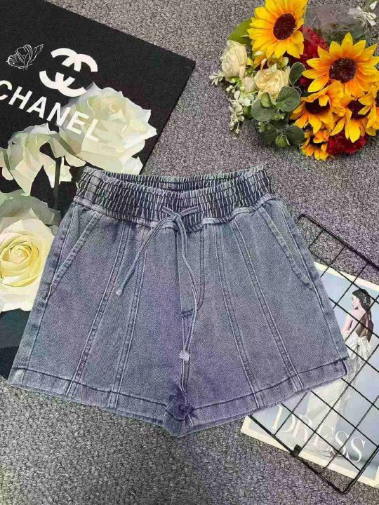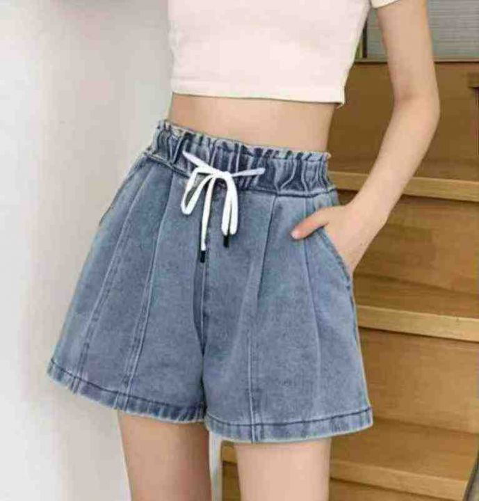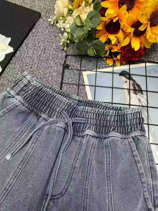 夏季新款洗水棉松紧腰宽松阔腿牛仔短裤,独立包装,码...