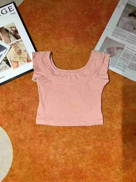 纯棉辣妹花边露肚脐短袖 573件,全清6.8元,分货7.8元,正品独立包装,码数—S到L,两个颜色,微甜辣妹t恤女短袖夏季纯欲修身设计感木耳边显瘦短袖短上衣