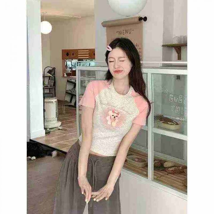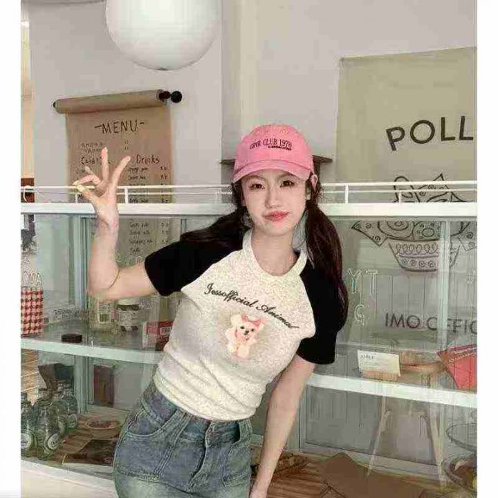 辣妹圆领拼接修身露肚挤短袖 406件,全清6.8元,正品独立包装,码数:S到XL,2025夏季美式紧身T恤女夏季复古粉色辣妹内搭短款打底衫修身上衣