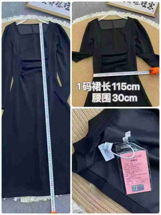赫本风黑色方领连衣裙63件9.9,