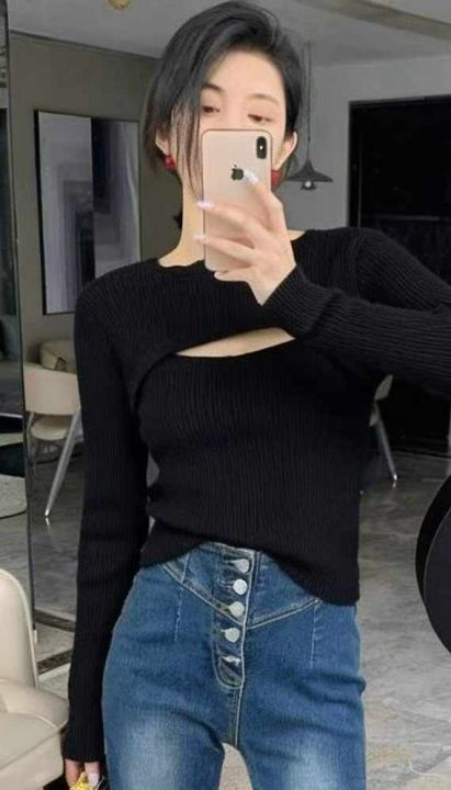 春季新款辣妹性感设计款针织毛衣2件套,独立包装,均码面料柔软舒适弹力大...