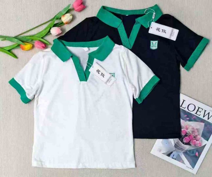 5.9元,靓妹短袖V领T恤棉质辣妹polo衫,562件,M-2XL...