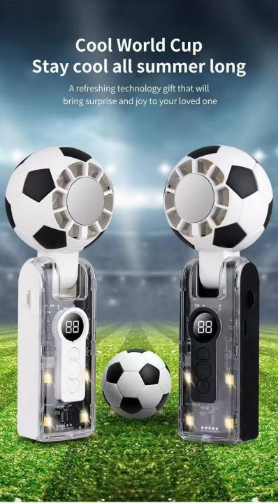 世界杯足球风扇,手持折叠带冰敷带灯,排单发货