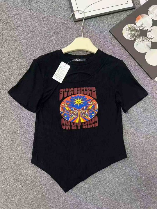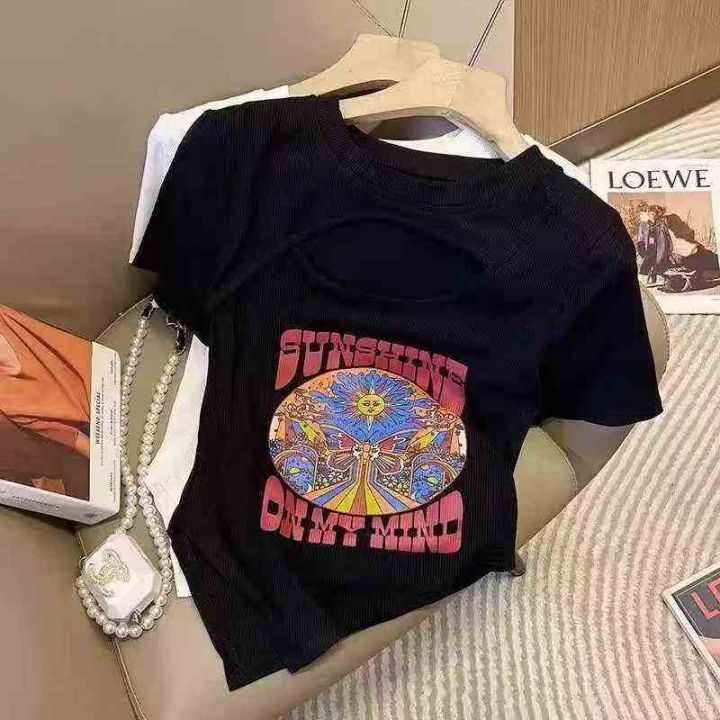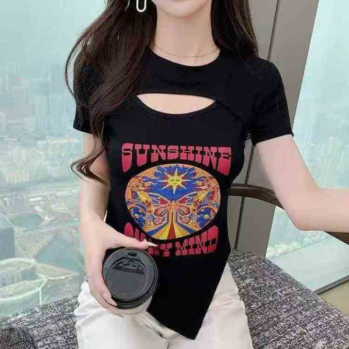 ☕️镂空上衣性感短袖t恤女显瘦修身洋气百搭辣妹T恤10...