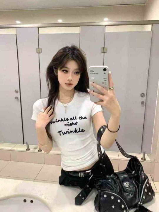 ☕️美式设计感正肩短袖女t恤夏季别致独特200件全清7.8元,均码高弹力,单...