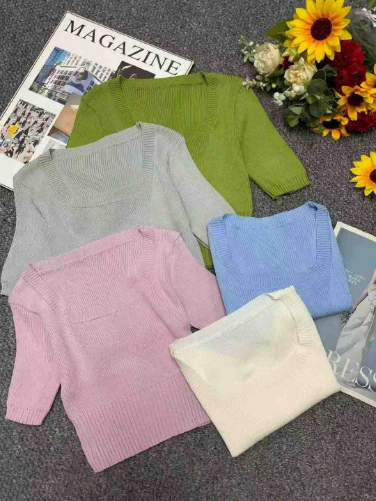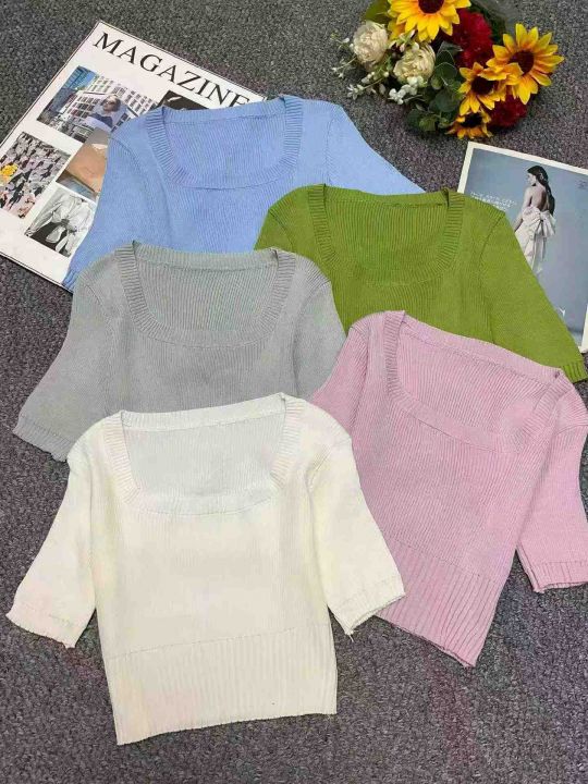 夏季新款冰丝弹力修身显瘦高腰净版简约百搭短袖针织衫,单款多色,均码面料柔软舒适弹力大,580件,全清4.9元超低价秒杀!分货加一!
