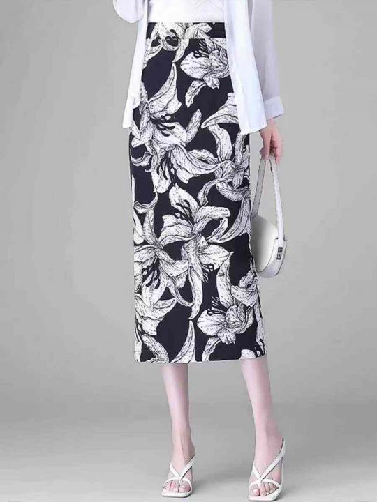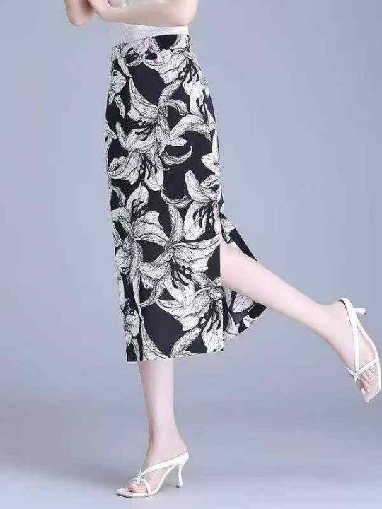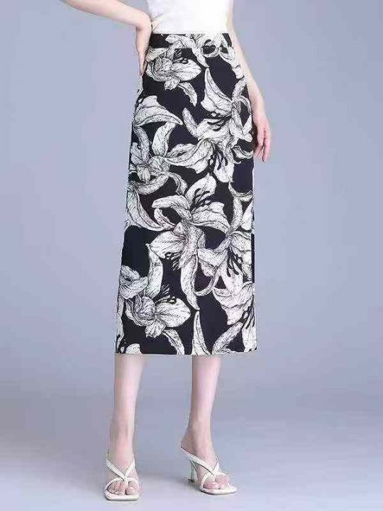 夏季新款时尚气质百搭洋气碎花开叉直筒半身长裙,独立...