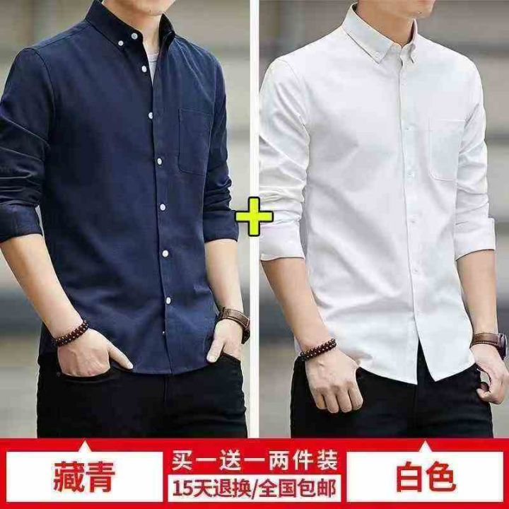百搭纯色棉衬衣男士长袖衬衫休闲上班衬衫,整款多色,...
