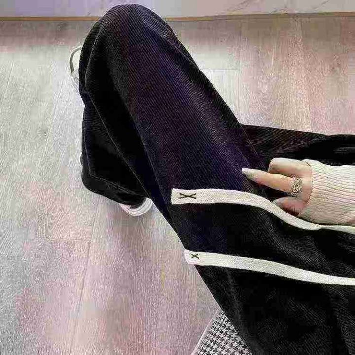 韩版简约春秋款女士雪尼尔灯芯绒垂感阔腿抽绳休闲直筒裤.图片款两种面料M-XL面料非常柔软舒适独立包装560条全清7.9分货加一