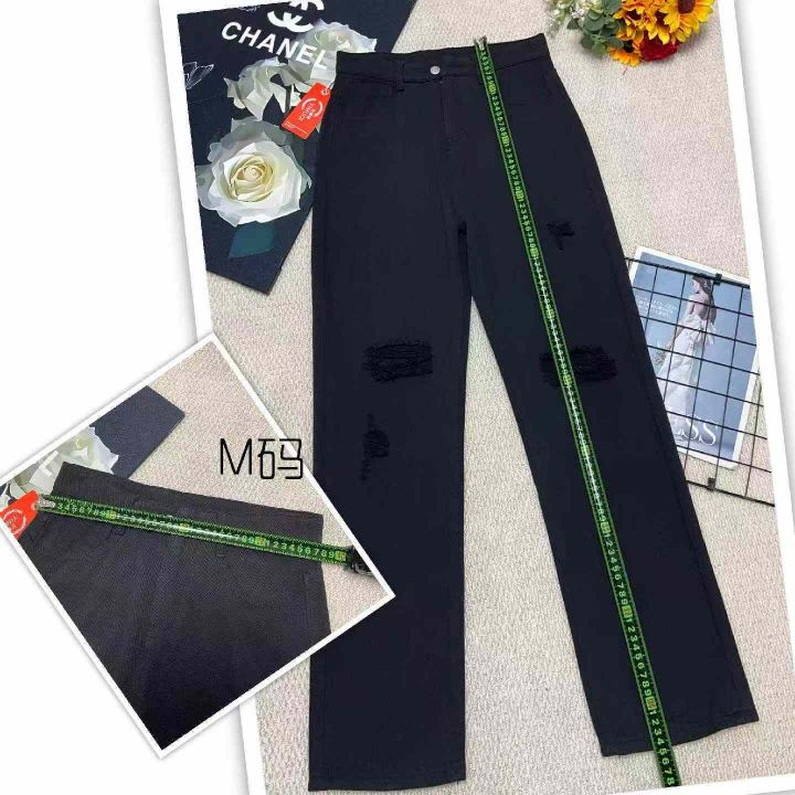 春季新款美式vibe风黑色微胖MM破洞窄版直筒阔腿牛仔裤,独立包装带吊牌,码数M-3XL码,400件左右,全清8.8元超低价秒杀!分货加一!