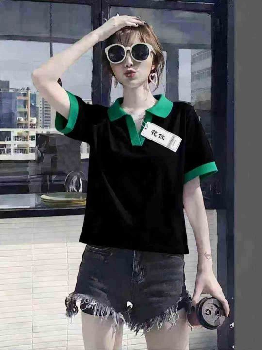 5.9元,靓妹短袖V领T恤棉质辣妹polo衫,562件,M-2XL...
