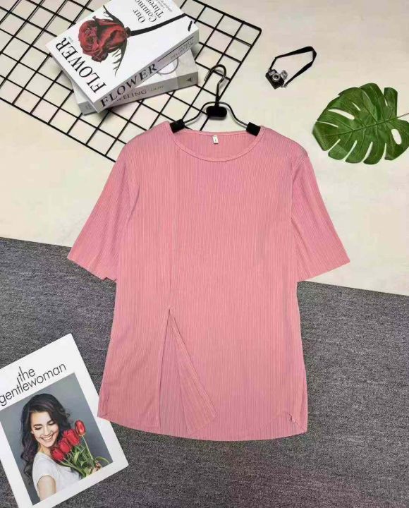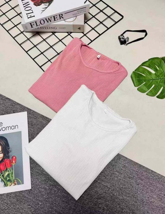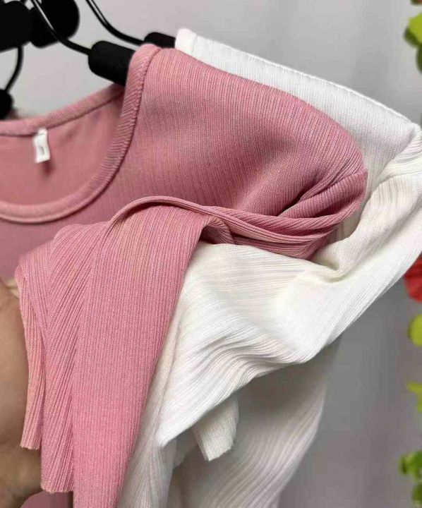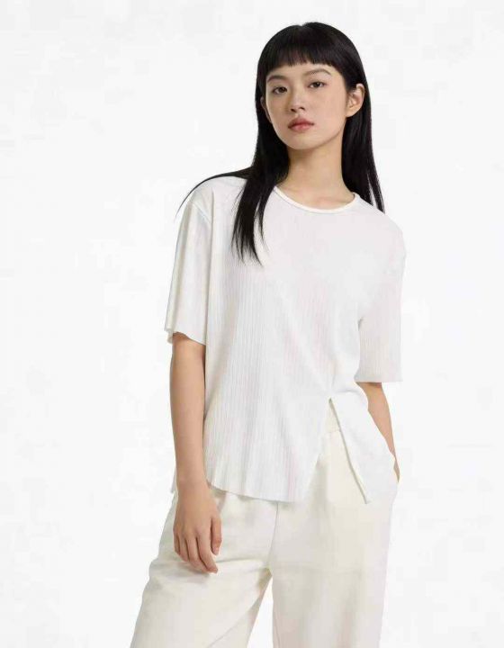 冰丝螺纹短袖,分叉下摆设计,整款两色,独立包装