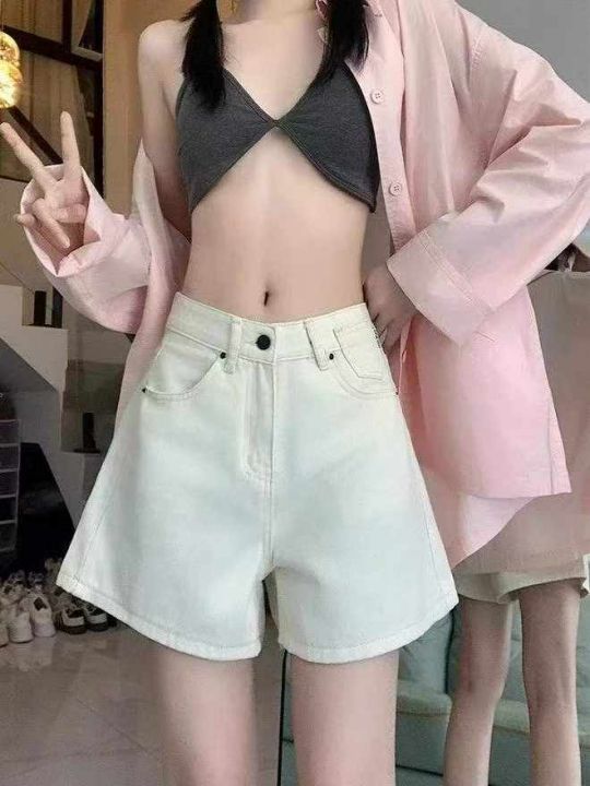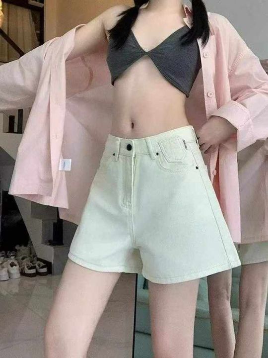 夏季新款高腰宽松刺绣小标洗水棉网红爆款阔腿牛仔短裤...