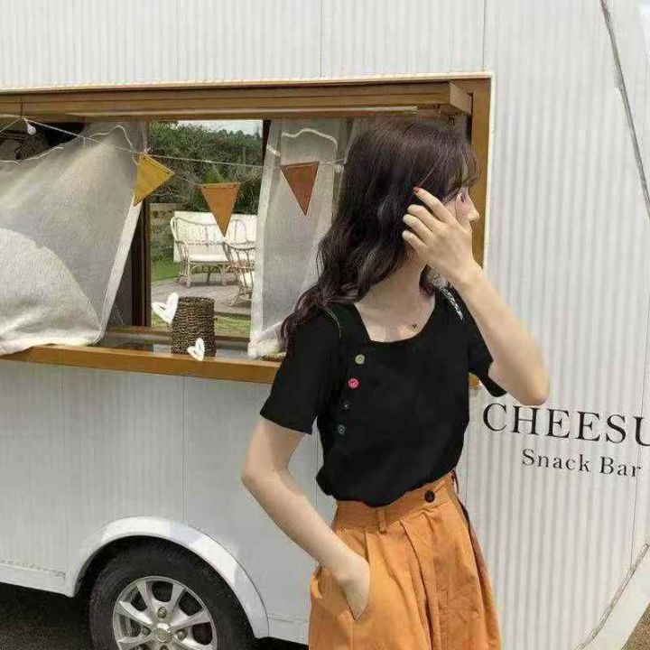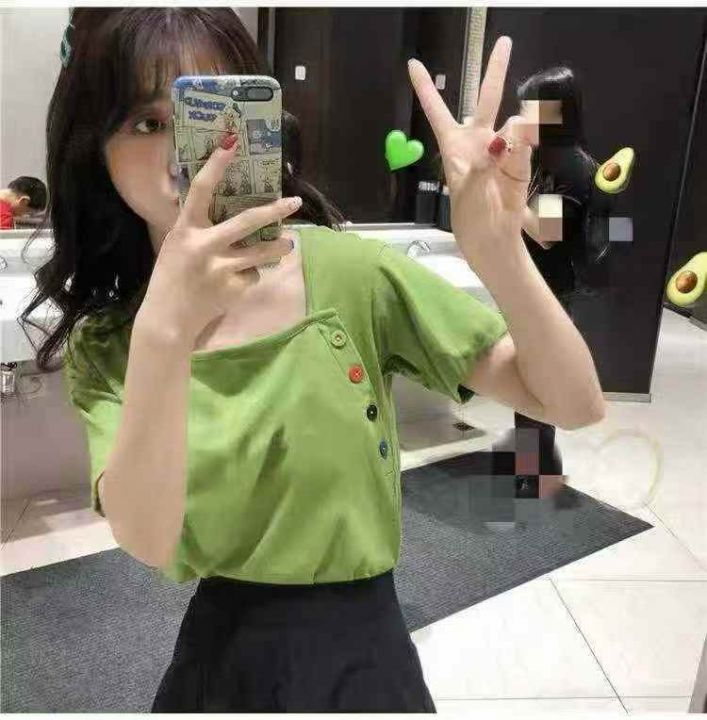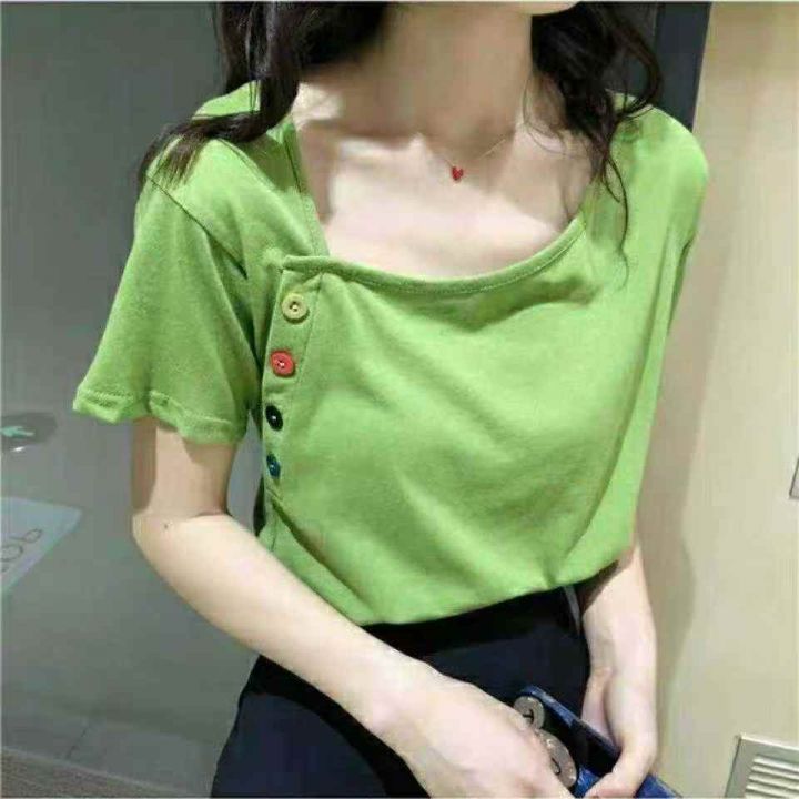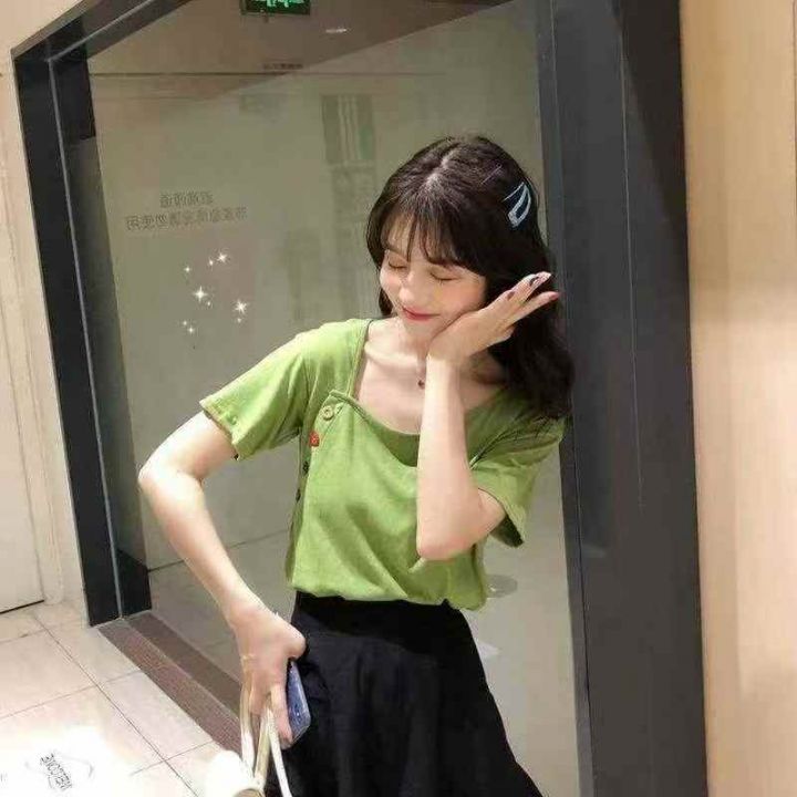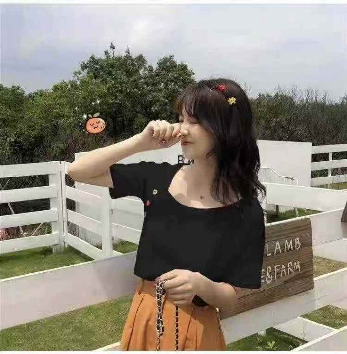 不规则短袖65棉t恤女夏新款韩版ins潮学生泫雅风宽松百...