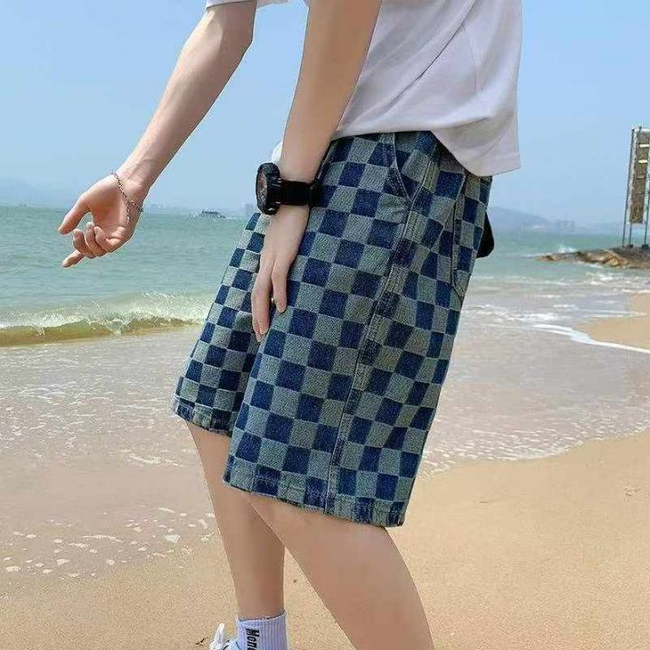 夏季新款高街港味ins复古格子潮牌原宿风宽松松紧腰牛仔短裤,独立包装带吊牌,码数M--3XL码,520件左右,全清9.9元超低价秒杀!分货加一!