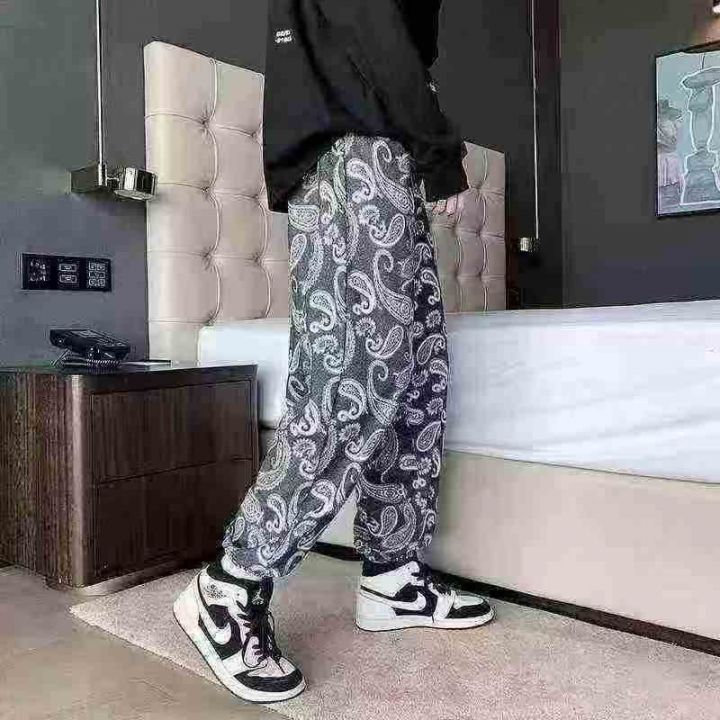188条,腰果花印花休闲裤男秋季新款欧美ins潮牌嘻哈老爹裤宽松束脚裤子,独立包装,码数M-3XL,全清6.9元,分货➕1