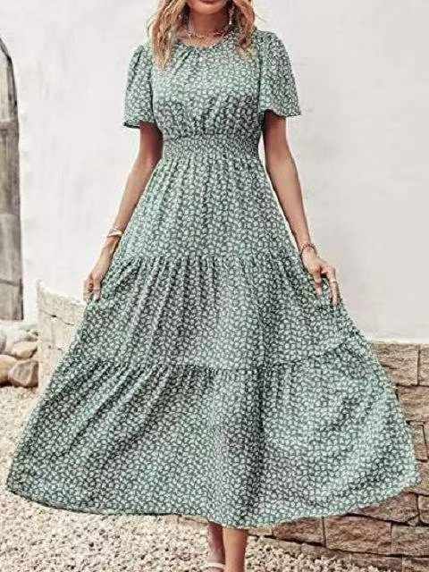夏季新款品牌外贸原单美式宽松碎花大长款雪纺连衣裙,...