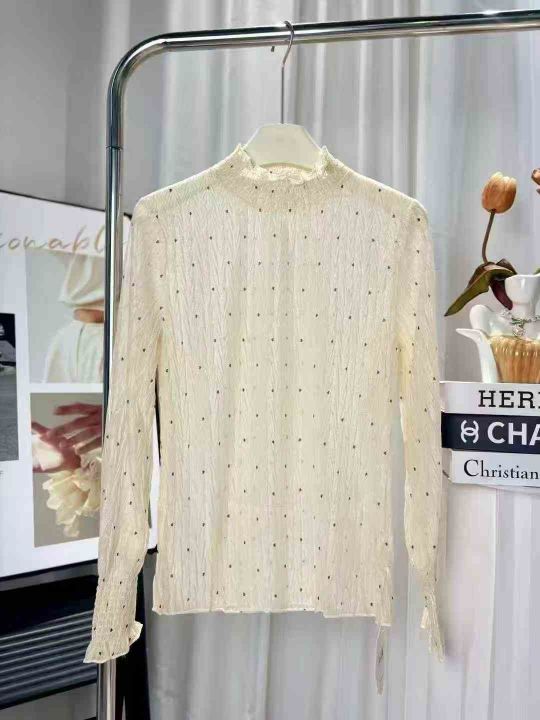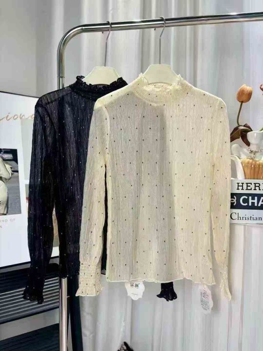 150件左右薄款透视波点蕾丝搭配打底衫女长袖内搭洋气喇叭袖网纱上衣,质量好高弹力,零瑕疵,尺码S-2XL,独立拉链包装,福利秒杀价4.9 不分货