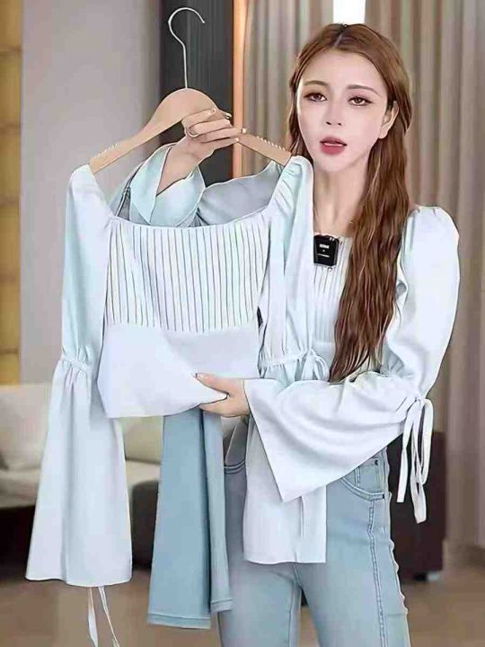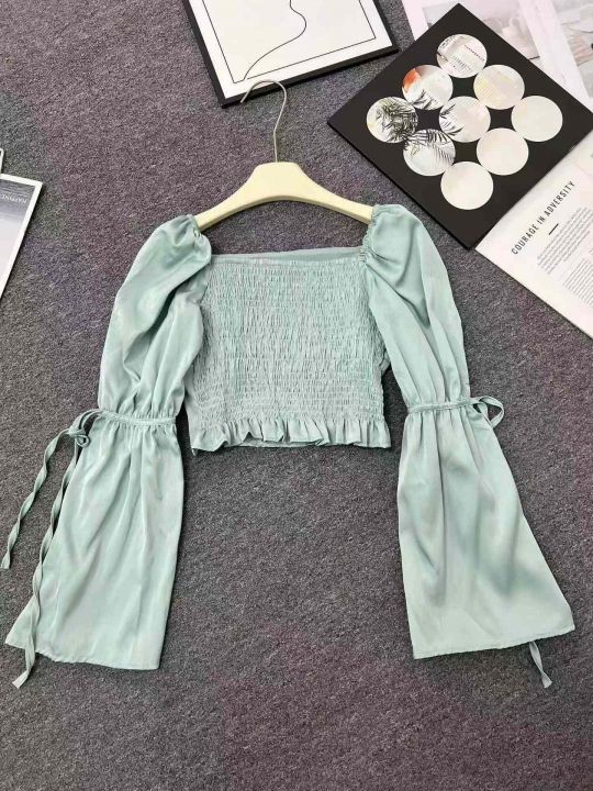 ☕️夏季蓝色衬衫长袖方领法式气质雪纺小衫宽松短款洋气独特别致上衣122件全清7.8元,均码 ,图片单色,正品独立包装[庆祝][庆祝][庆祝]