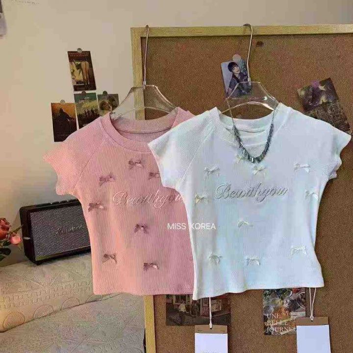 ☕️韩系甜美字母刺绣短袖t恤别致绝美修身显瘦纯欲蝴蝶工艺上衣600件全清8.8元,分货9.8元,码数S到XL,单款3个色,高弹力好质量[庆祝][庆祝][庆祝]重工工艺辣妹T恤