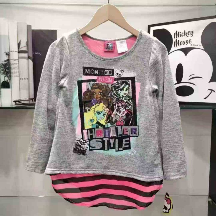 2.8元清,卡通印花中长款休闲T恤女中大童夏季新款薄衫宽松长袖上衣,独立包装,S-XL,73件
