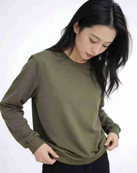 3.5清电商仓回收226件早春必备慵懒风简约军绿色纯色套头圆领卫衣,码数S-5X...