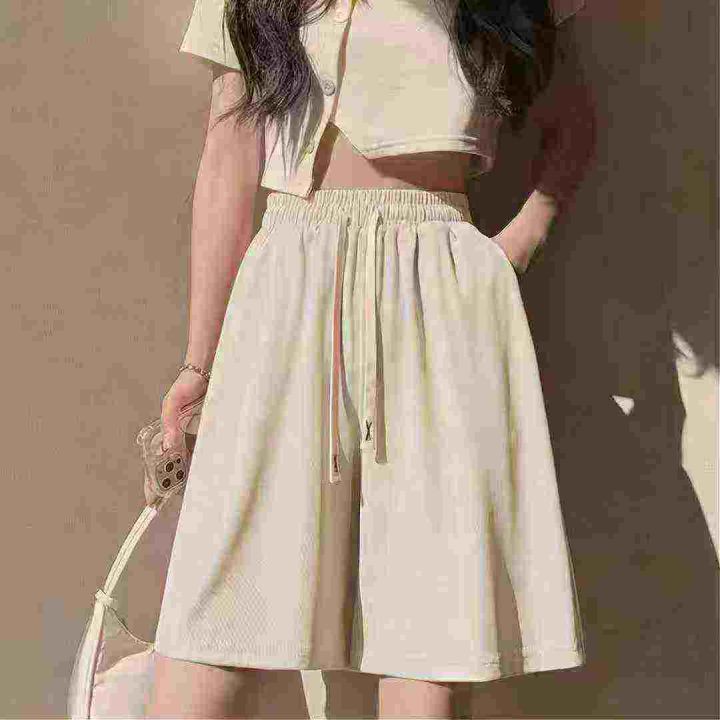 3507条\' 冰丝短裤女直筒宽松五分高腰夏季外穿垂感运动休闲裤子,独立包装,码数M-2XL,分货➕1,货号001#30