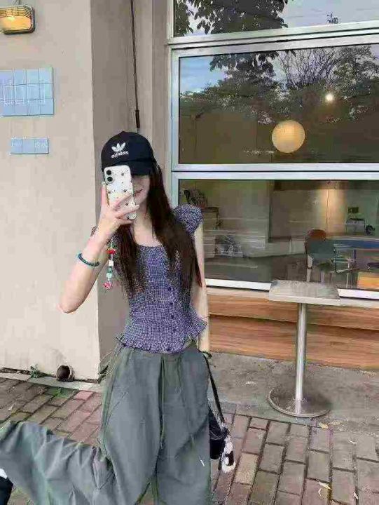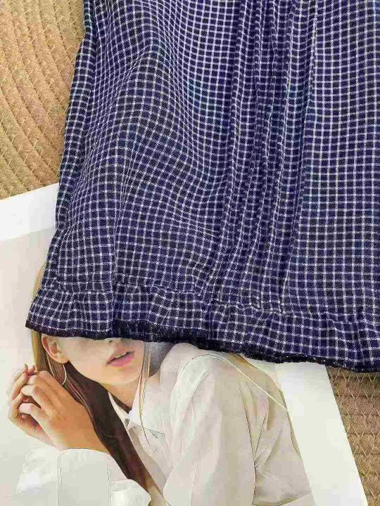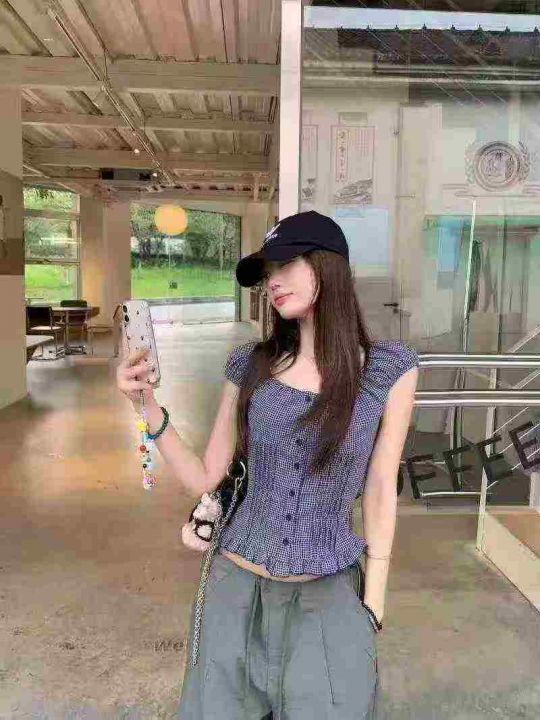 韩系复古格纹短袖衬衫187件7.9褶皱设计,荷叶边,码数...