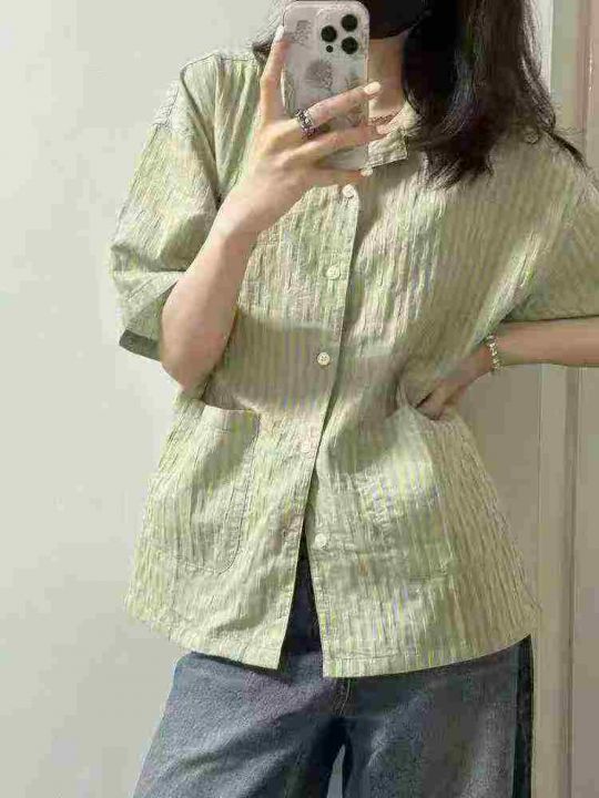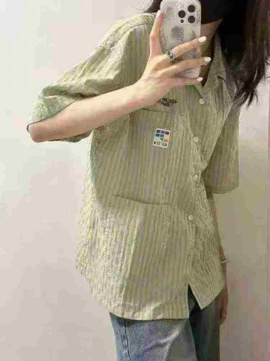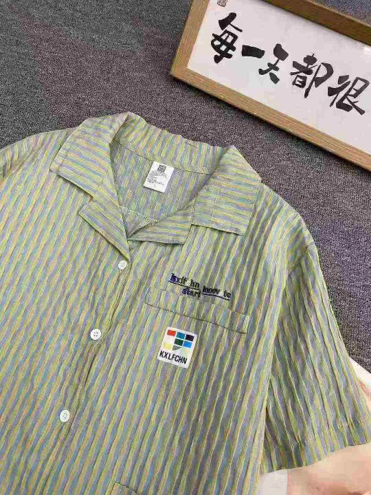 复古条纹短袖衬衫114件8.8,后领包边到件,字母刺绣,...