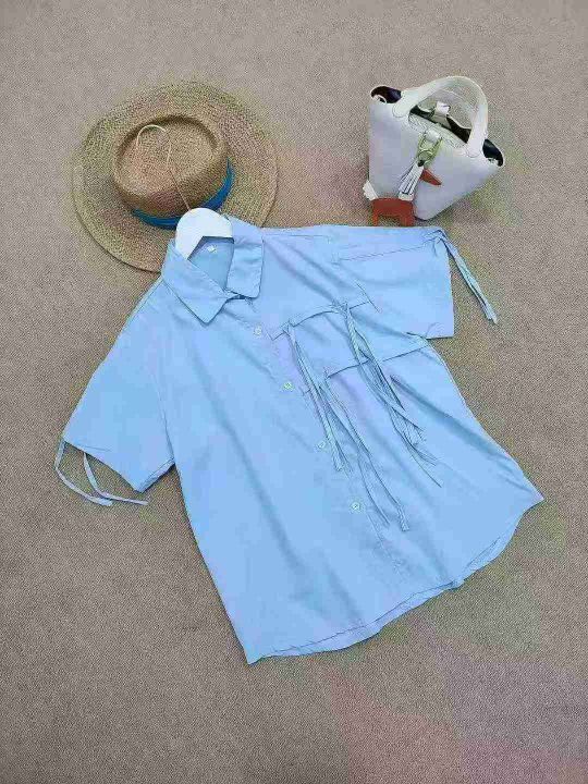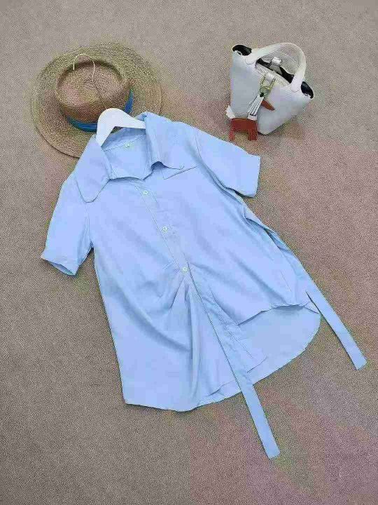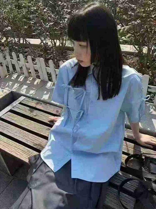 [月亮]:系带设计感日系短袖衬衫