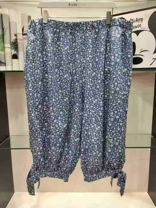 全清2.8元,夏新款印花木耳边抽绳灯笼裤复古宽松飘逸薄休闲裤,独立包装,L-4XL,118件
