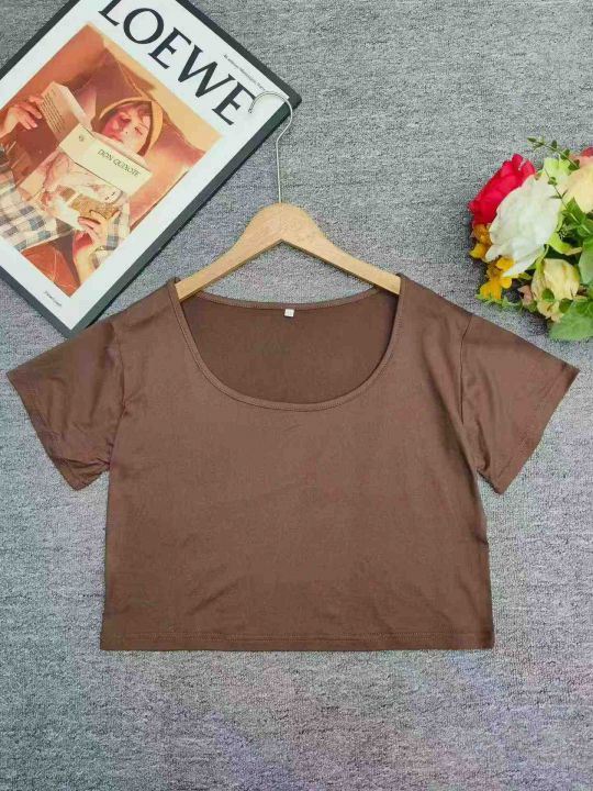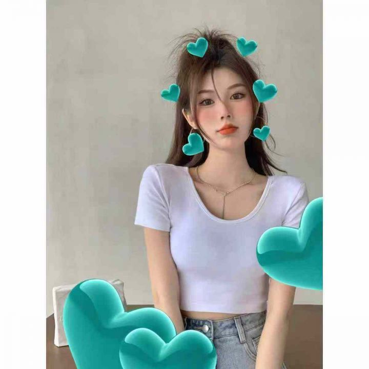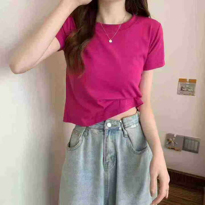 2.5清电商仓回收369件辣妹港风露肚脐纯色短袖T恤,码...