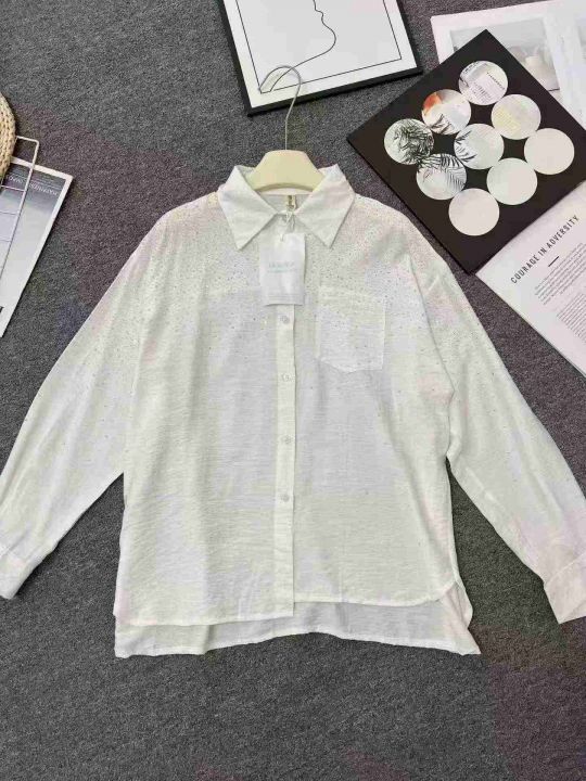 ☕️当季热销款烫钻衬衫380件全清9.8元,均码,单款白色,独立包装,超级火百搭开衫轻熟简约风白色长袖衬衫女设计感洋气通勤上衣高级感烫钻款[庆祝][庆祝][庆祝]