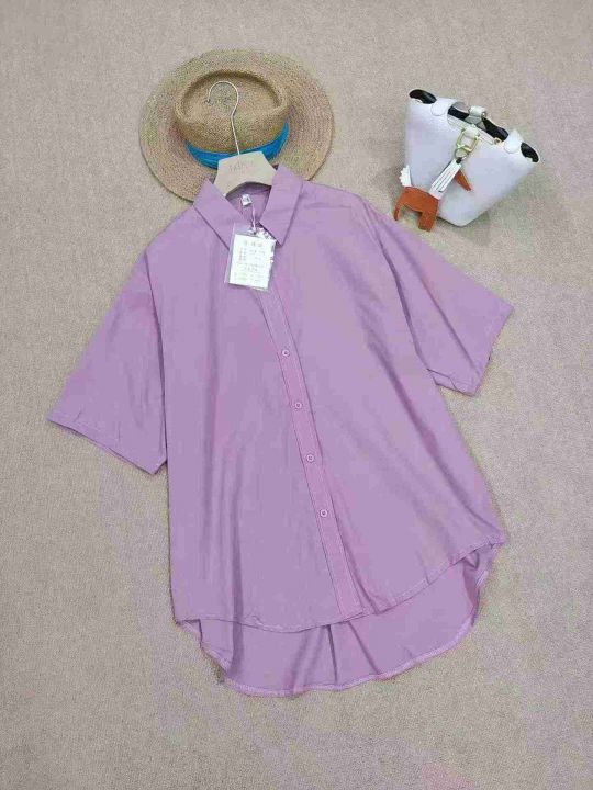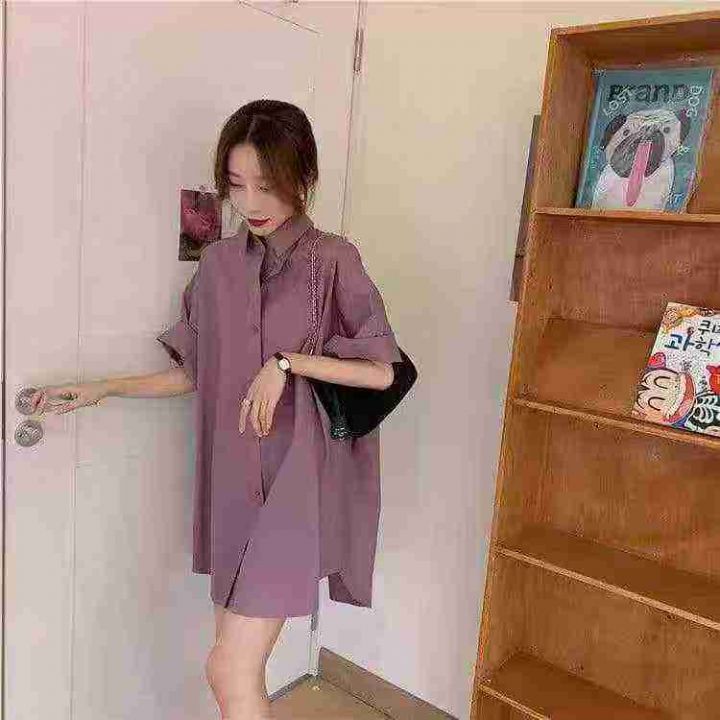清仓4.978件气质简约纯色短袖衬衫宽松百搭装翻领开衫 衬衫上衣 S-XL码,独...