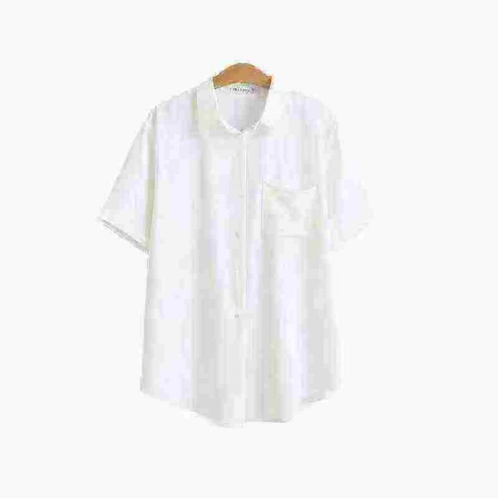 清仓4.978件气质简约纯色短袖衬衫宽松百搭装翻领开衫 衬衫上衣 S-XL码,独...
