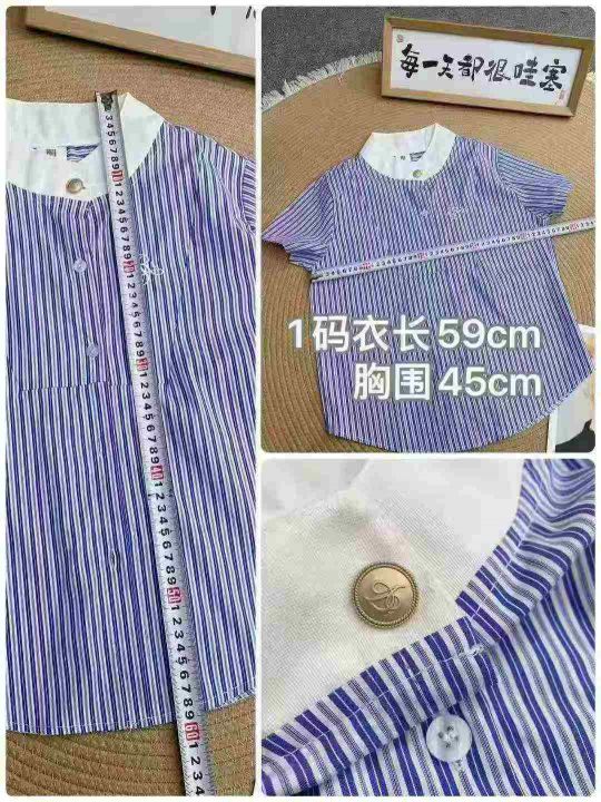蓝色条纹短袖衬衫164件7.9,撞色拼接,后领包边,图案...