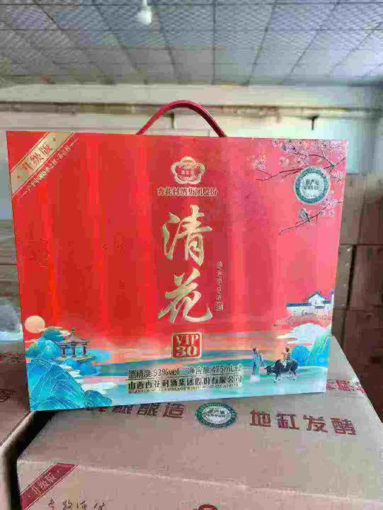 新到100箱清花VIP--30礼盒酒,全清私聊,10箱起发190元,一箱起发200元一箱,一箱3提,一提2瓶,带手提袋,2026年生产,53度清香型白酒,山西杏花村集团出品!。 货号:34268