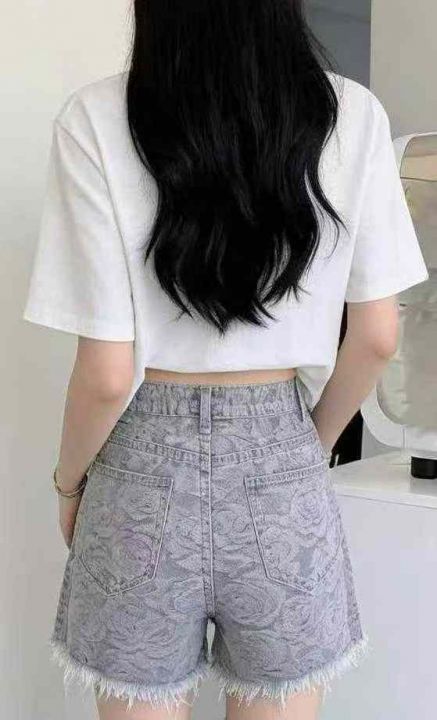 夏季新款洗水棉宽松百搭时尚提花毛边阔腿牛仔短裤,独立包装,码数S- 2XL码...