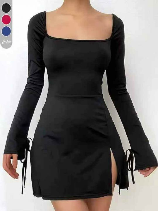 4.5元[爱心][爱心] 性感方领修身喇叭袖开叉连衣裙,独立包装,码数S M L XL码,数量50件