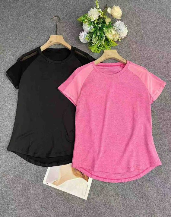 1400件运动健身拼结网纱速干瑜珈短袖。面料柔软舒适,高弹力,品质好。S 一2XL,独立包装带吊牌,全清3.5