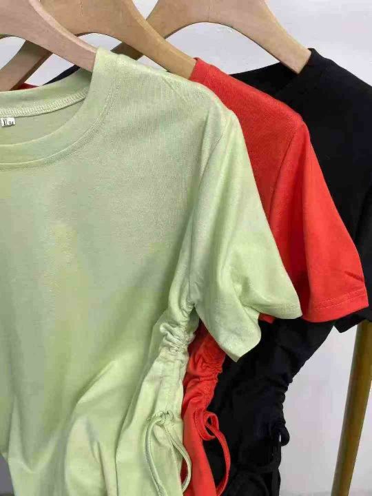 天猫在售款300件左右高品质夏季纯棉中长款靓妹抽绳收腰短袖T恤连衣裙,单款三色,有弹力,码数M-3XL,独立包装