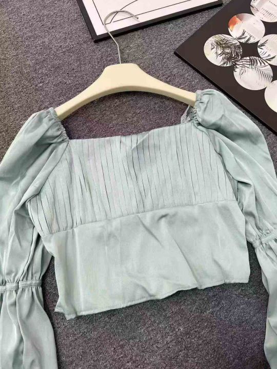 ☕️夏季蓝色衬衫长袖方领法式气质雪纺小衫宽松短款洋气独特别致上衣122件全清7.8元,均码 ,图片单色,正品独立包装[庆祝][庆祝][庆祝]