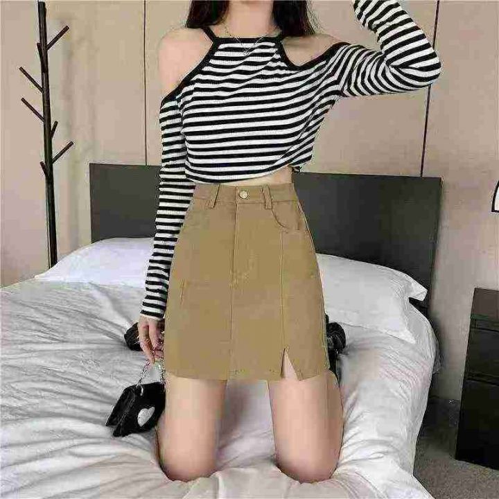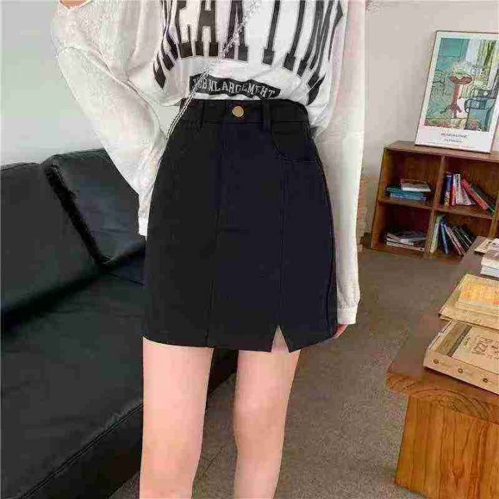 高货品牌弹力牛仔短裙女夏季新款高腰a字包臀显瘦半身...