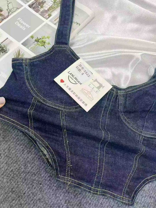 美式复古牛仔吊带抹胸个性辣妹修身显瘦上衣490件全清8.8元 分货9.8元,码数SML ,有弹力,正品独立包装[庆祝][庆祝][庆祝]百搭热销牛仔吊带抹胸款